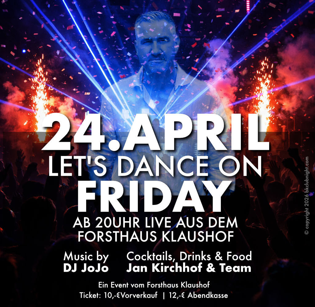 Habt ihr mal wieder Lust auf einen ausgelassenen Abend mit abwechslungsreichem Clubsound und leckeren Drinks? Dann kommt am Freitag, 24. April zum Forsthaus Klaushof!